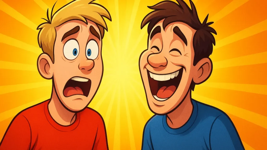 O humor aqui é direto, físico e repetitivo de propósito. Se você gosta de comédia de situação que cresce em absurdos, vai se identificar.